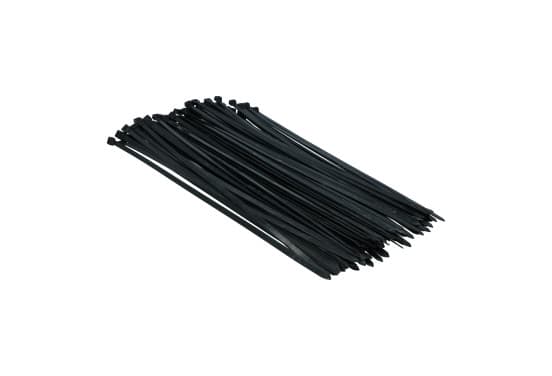 Attaches de câble universelles en plastique noir Womi W556 d'une longueur de 450 mm et d'une largeur de 7,6 mm. Avec fermeture en plastique et languette de fermeture incurvée en plastique pour une insertion facile de l'extrémité dans la fermeture. Les serre-câbles sont résistants aux UV, ont une haute résistance à la traction et peuvent supporter des températures de -40° à +85° C. Les serre-câbles sont livrés par 100 pièces. | |