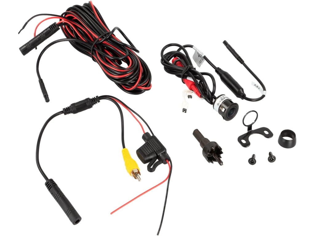 Mini caméra de recul universelle (ronde) Sous-structure/extension avec lignes visuelles Note: La caméra ne doit pas être connectée sans le convertisseur de tension du jeu de câbles. Toutes les caméras ACV sont adaptées à une utilisation continue. caractéristiques de la caméra : Construction : plastique/métal avec support d'aile Couleur : noir Extras : lignes d'image via cavaliers, diverses options de montage Type de capteur : 1/3" CMOS Système d'image : NTSC Pixels effectifs : 976 x 592 Objectif : 1,9 mm / F 2,0 Lux : 0,3 Résolution : 700 lignes TV Angle de vision : 170° + 5° Angle de vision : horizontal 115°, vertical 80° + 5° Poussière et étanche : IP68 Connexion : mini-connecteur 4 broches 5,2 mm Tension d'alimentation : 12-24 Volts DC + 10% Consommation d'énergie : 200 mA Plage de température de fonctionnement : -30°C - 75°C Température de stockage : -40°C - 85°C Diamètre : 16,5 - 18,3 mm selon le montage Câble de connexion à la caméra : Câble de 1 mètre avec mini connecteur 4 broches 5,2 mm Jeu de câbles : Câble de 1 mètre avec mini-prise 4 broches comprenant 2 cavaliers Rallonge de 6,5 mètres comprenant un câble d'alimentation de 3 mètres pour la connexion au feu de recul et par câblage au câble de connexion sur l'écran/interface mini connexion 4 broches 10 mm et fiche 5,2 mm Câble de connexion électrique de 0,2 mètre avec fusible et câble de connexion vidéo (RCA) Accessoires optionnels : 771000-6305 rallonge 5 mètres 771000-6310 rallonge 10 mètres 771000-6315 rallonge 15 mètres Convient pour : Universel Différents modèles Diverses années | |