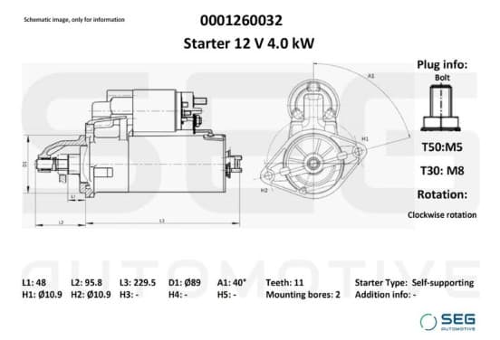 Démarreur John Deere 4,0 kw