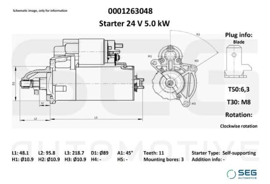 | Pince | T50: 6,3; T30: M8 |