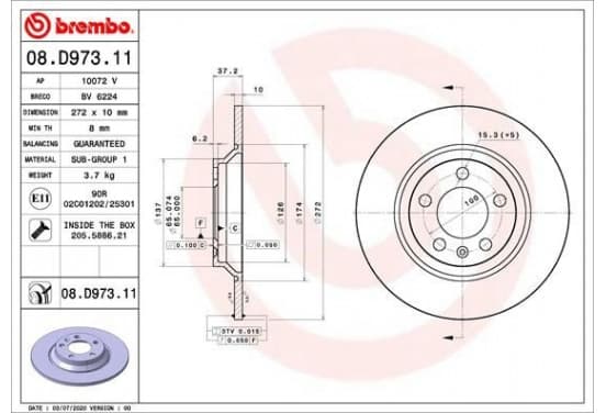 Disque de frein 08.D973.11 Brembo