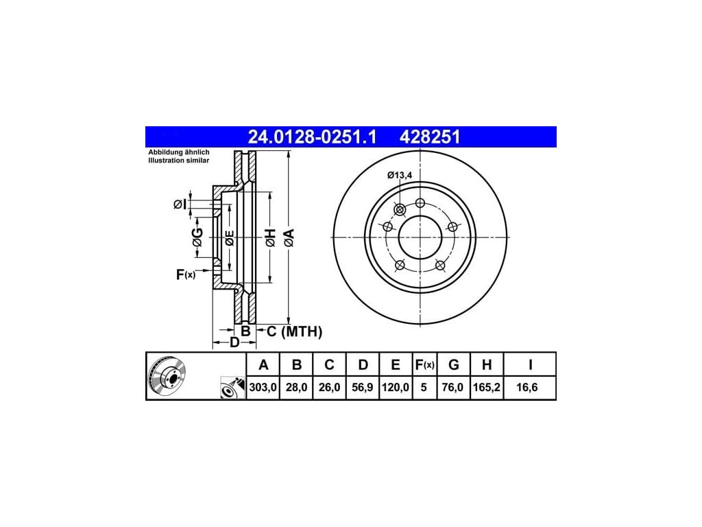 Disque de frein 24.0128-0251.1 ATE