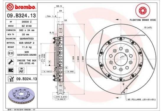 Disque de frein TWO-PIECE FLOATING DISCS LINE 09.B324.13 Brembo