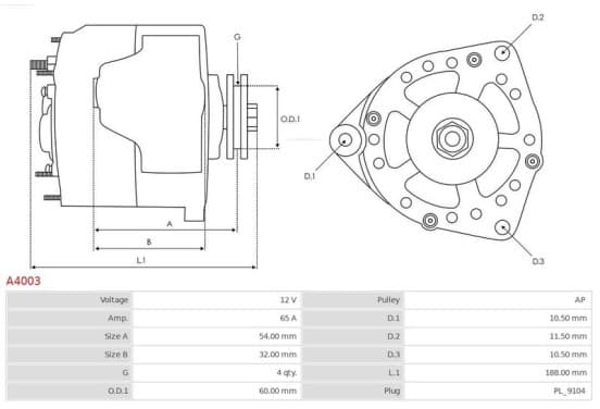 Numéro de produit d'origine: 1639951 | Ean: 5901259404838 | Numéro de fabrication: A4003