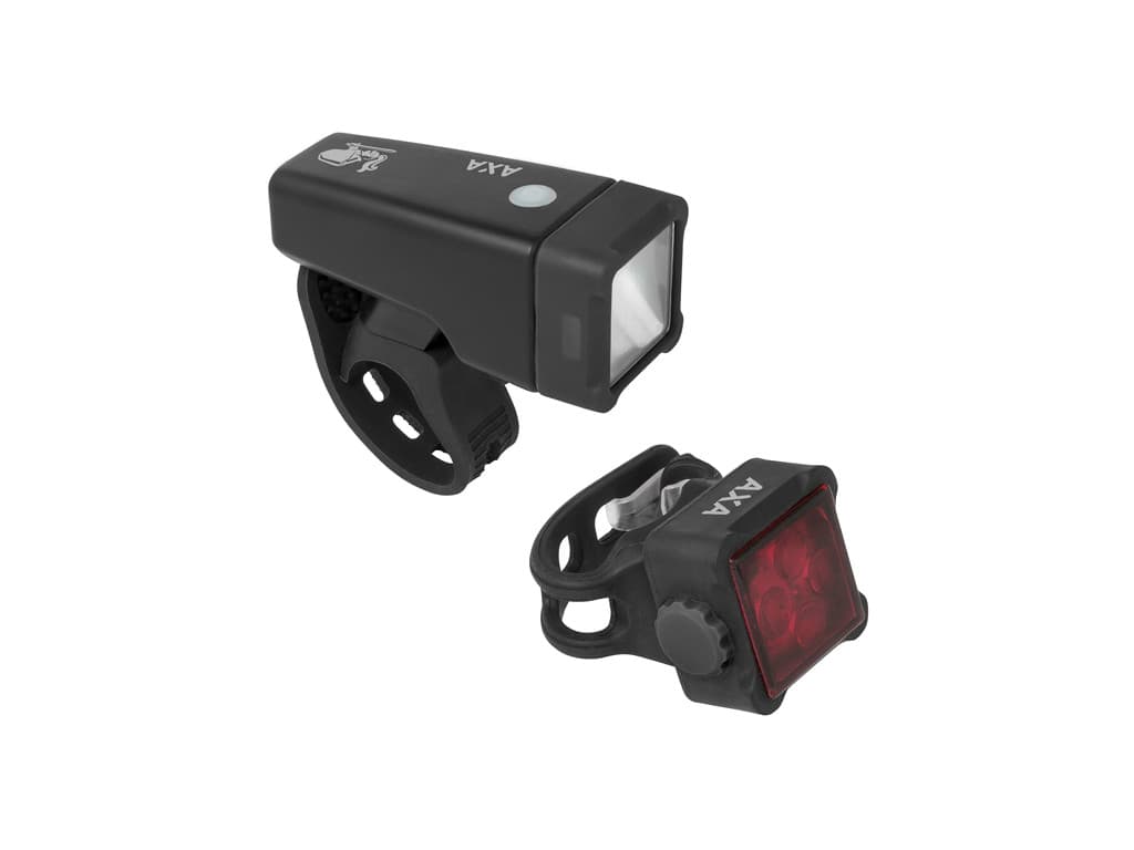 L'AXA Niteline T4-R est un ensemble de lampe frontale torche et de feu arrière compact, tous deux rechargeables par USB. L'éclairage est petit et compact, mais fournit suffisamment de lumière pour être clairement visible dans la circulation. De plus, l'éclairage est facile à monter sur le vélo grâce aux sangles en caoutchouc. | |