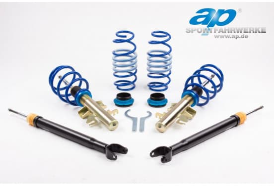 AP est l’une des meilleures marques de suspensions sportives, synonyme de qualité au meilleur prix. Les ensembles d'hélices AP sont fabriqués en Allemagne et sont certifiés TÜV. Ils sont fabriqués à partir de matériaux de haute qualité qui renforcent la maniabilité de la voiture. Sécurité et plaisir de conduire garantis avec ces ensembles d'hélices AP. Les ensembles de vis sont constitués de pièces anti-corrosion plaquées zinc et le ressort revêtu de poudre en bleu donne un aspect sportif. Les ensembles de vis de PA sont réglables en hauteur pour les deux voitures et à l'avant et à l'arrière. Notez que tous les ensembles sur l'essieu arrière ne sont pas réglables, ceci est dû à la construction même de la voiture. Entrez votre plaque d'immatriculation ou votre modèle de voiture pour voir ceux qui conviennent à votre voiture. La réduction en mm spécifiée est la réduction testée par le TÜV. En pratique, ils peuvent toujours être inférieurs de plusieurs mm, mais cela n’est pas approuvé par le MOT. Les ensembles d'hélices AP présentent les avantages suivants: