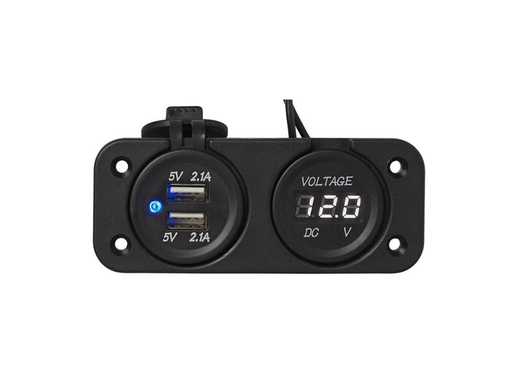 Kit d'installation: voltmètre 6-30V + port USB double 2x2100mA