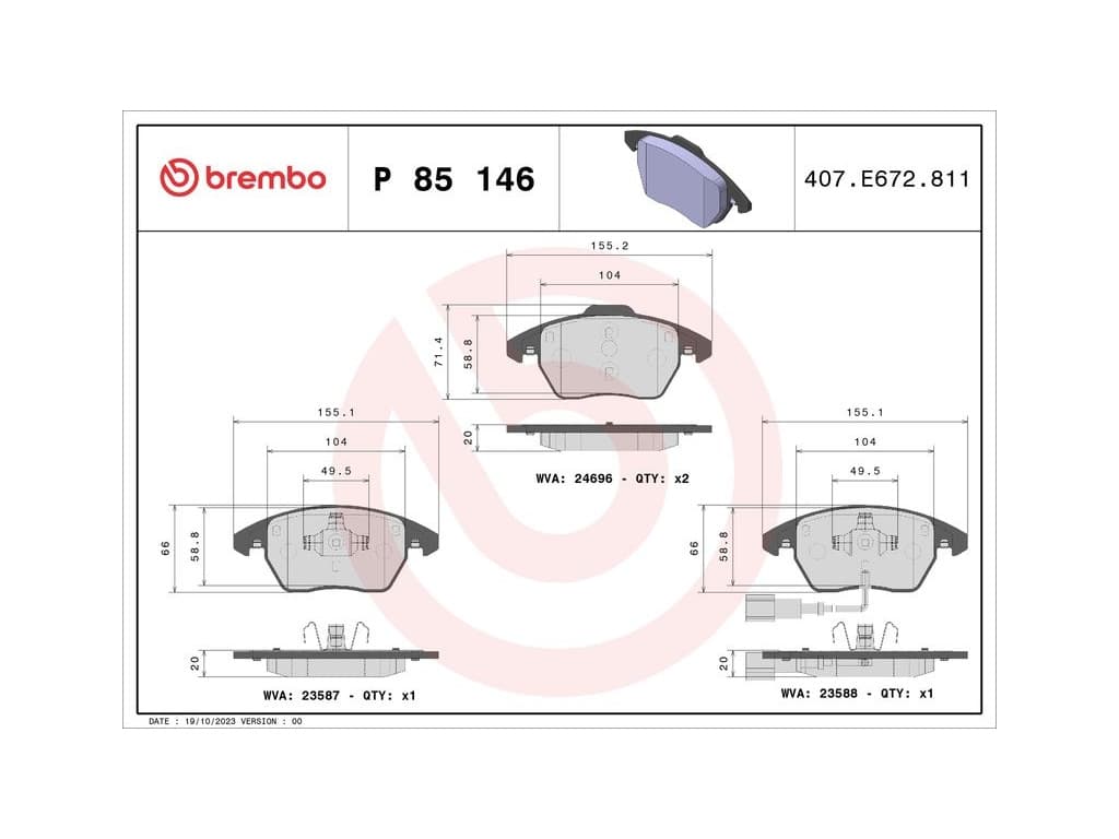 Kit de plaquettes de frein, frein à disque P 85 146 Brembo