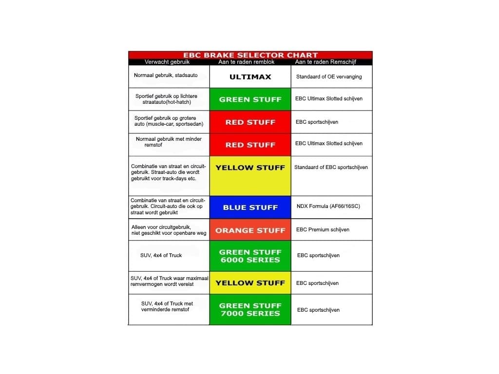 Les plaquettes de frein EBC Yellowstuff offrent à votre voiture une plus grande puissance de freinage. Ces cales peuvent être utilisées en remplacement des plaquettes de frein d'origine et constituent une nette amélioration par rapport aux plaquettes de frein «standard»! Les plaquettes de frein Yellowstuff conviennent à la fois aux sports de rue et aux circuits. Cela signifie que les plaquettes de frein font leur travail même par temps froid, bien que le potentiel réel apparaisse lorsque les freins sont chauds. | |