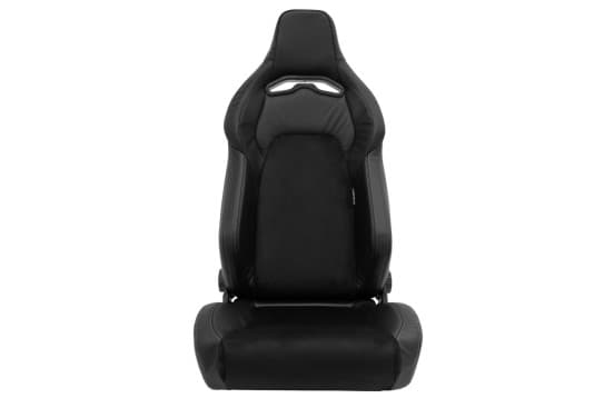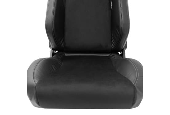 Siège sport VGR Premium - Cuir noir et Alcantara + Coutures argentées - Réglable des deux côtés