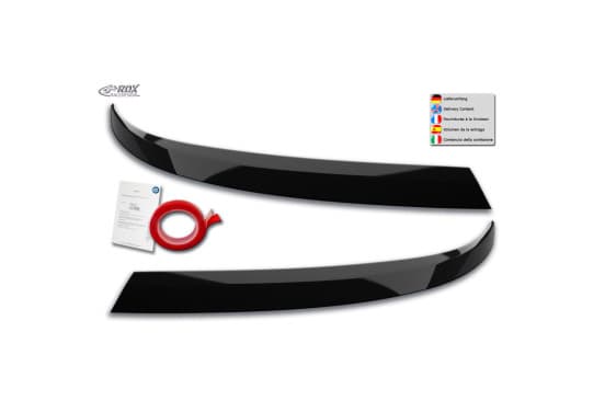 Spoilers de phare sur mesure pour Volkswagen Transporter T6.1 2021 - (ABS noir brillant) Ces spoilers de phare sont fabriqués en plastique ABS/PUR de haute qualité de qualité OE. Ils sont fournis dans une couleur noir brillant et peuvent être montés immédiatement, peindre cette pièce est possible mais pas nécessaire. Ils peuvent être facilement fixés avec le ruban de montage fourni. Avec approbation TÜV. | |