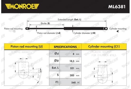 Vérin de hayon, de coffre ML6381 Monroe